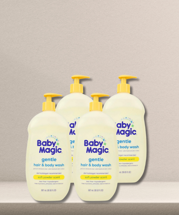 Baby Magic Gentle Hair & Body Wash, Soft powder scent, 30 Fl Oz, Pack of 4, With nourishing Calendula and Coconut Oil